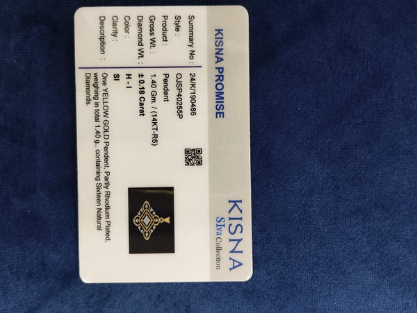 Minimal yet radiant, this diamond pendant is a timeless treasure crafted in fine 14K gold. Embellished with 0.19 carats of dazzling IJ-SI quality diamonds, it offers the perfect balance of subtle sparkle and graceful design — ideal for everyday elegance or a special moment.