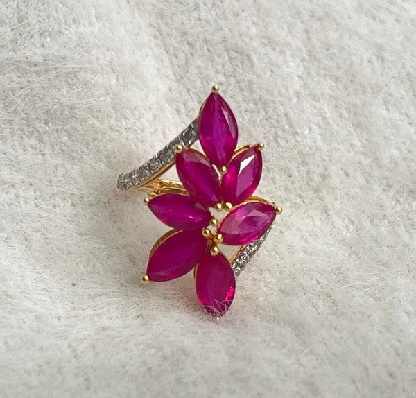 Exquisite 14K Gold Ring with Natural Diamonds & Ruby Petals – 5.86ct Statement Beauty