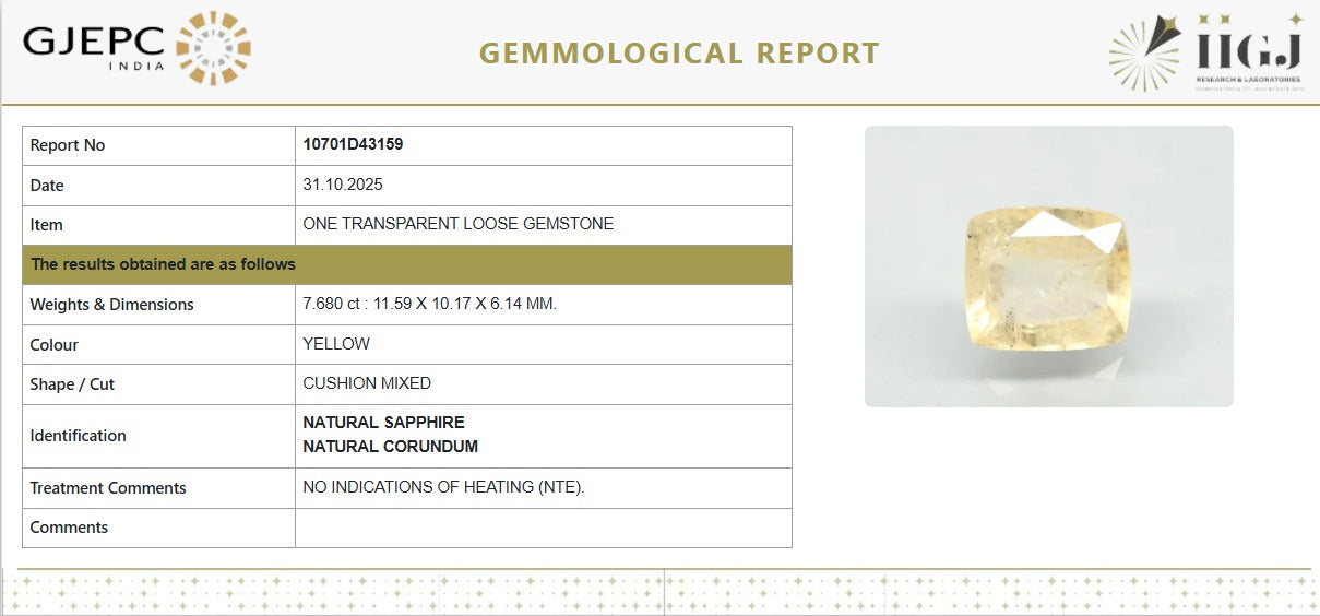 Natural Yellow Sapphire | C...Natural Yellow Sapphire | Cushion Mixed Cut | Transparent | Govt. Lab Certified | Report No. 10701D43159