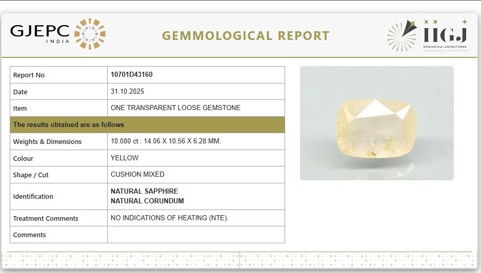 Natural Yellow Sapphire | O...Natural Yellow Sapphire | Cushion Mixed Cut | Transparent | Govt. Lab Certified | Report No. 10701D43160