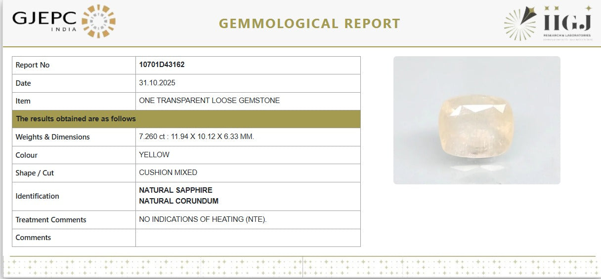 Natural Yellow Sapphire | C...Natural Yellow Sapphire | Cushion Mixed Cut | Transparent | Govt. Lab Certified | Report No. 10701D43162