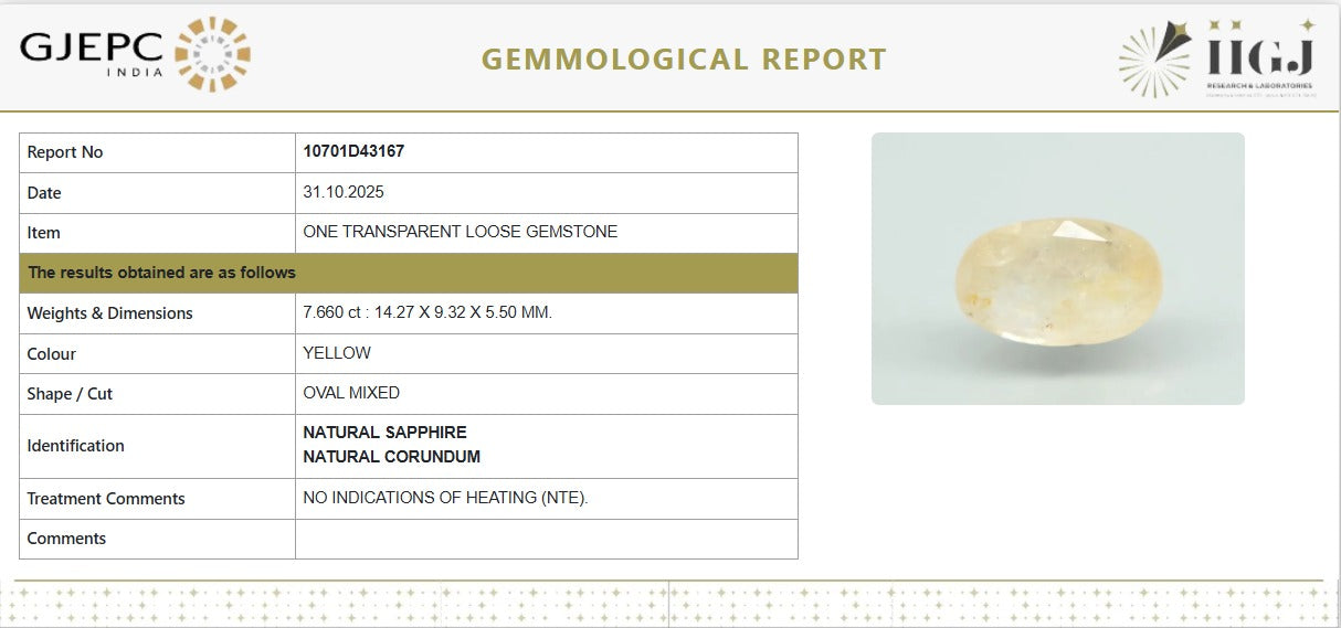 Natural Yellow Sapphire | C...Natural Yellow Sapphire | Oval Mixed Cut | Transparent | Govt. Lab Certified | Report No. 10701D43167