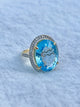 This breathtaking Amethyst Ring features a rich oval-cut amethyst, exuding regal charm and sophistication. Set in 14K Gold, the intricate design is adorned with natural diamonds, adding brilliance to this timeless piece.