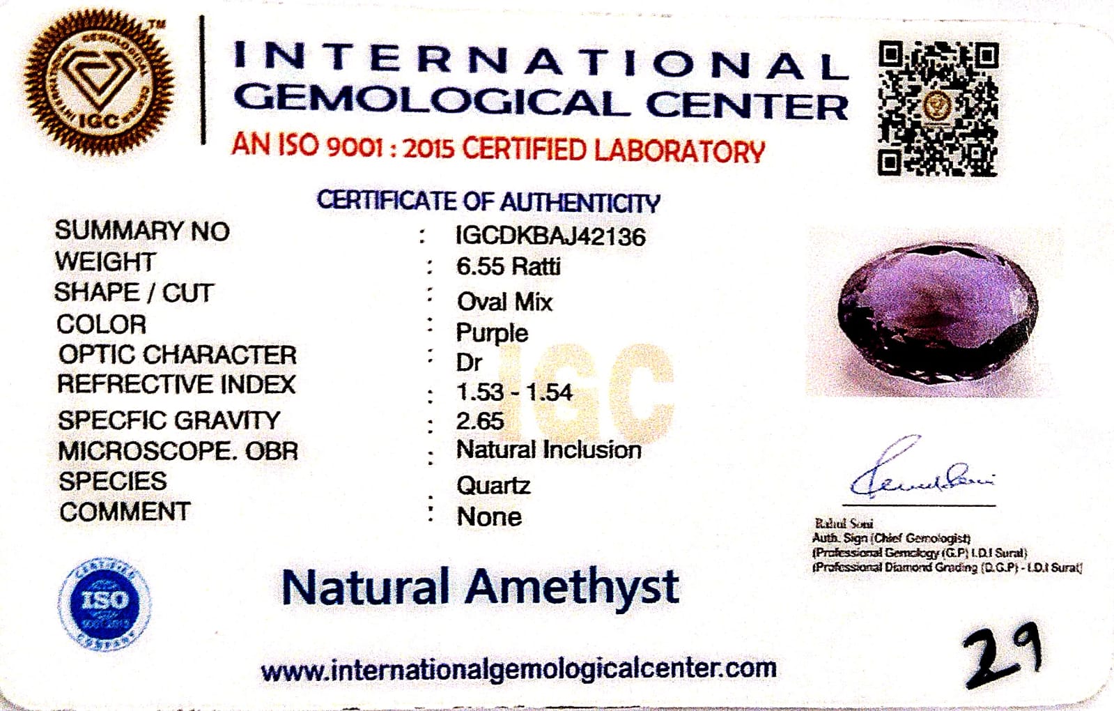 Natural Amethyst | Oval Mix...Natural Amethyst | Oval Mix | Lab Certified No. IGCDKBAJ42136