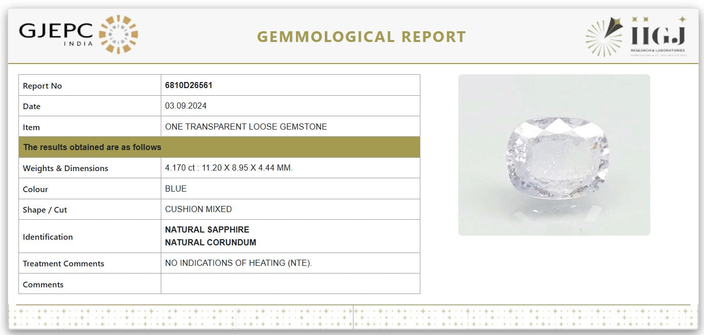 Natural Blue Sapphire | Cus...Natural Blue Sapphire | 4.17 Carat | Cushion Mixed Cut | Unheated | Govt. Lab Certified | 6810D26561