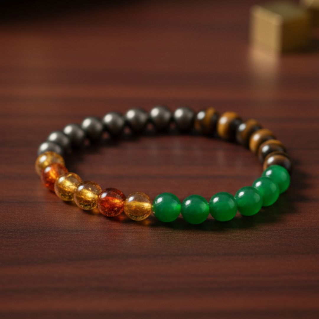 Money Magnet Bracelet – Pyrite, Tiger Eye, Carnelian & Green Jade Beads