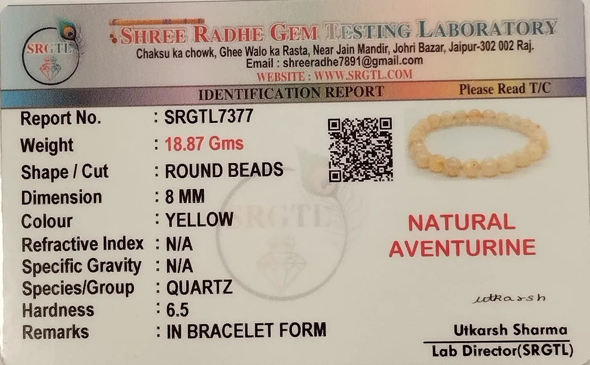 YELLOW OUARTZ BRACELET JUPITORYELLOW Premium Aventurine Self Confidence & Worth Bracelet For Men & Women