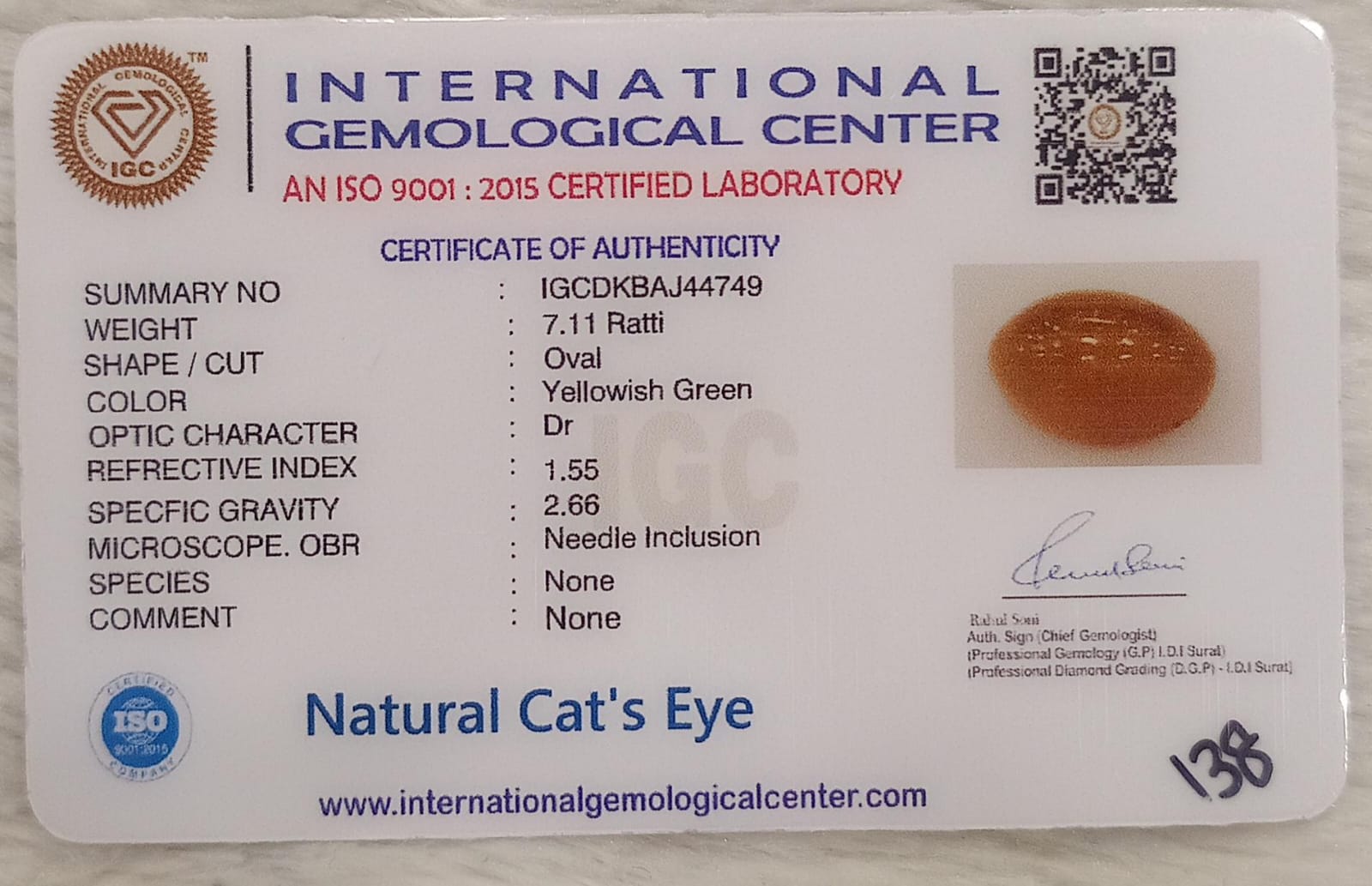 Natural Cat’s Eye: The Stone of Ketu for Protection and Spiritual Growth Summary No IGCDKBAJ44749