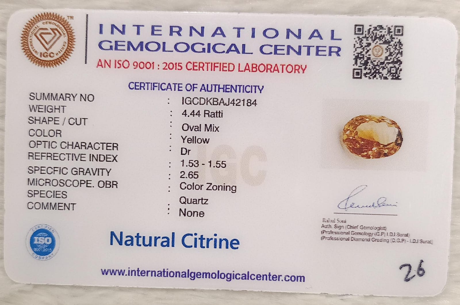 4.44 Ratti natural citrine is carefully sourced and meticulously checked for quality and authenticity. Unlike treated or synthetic stones, our citrine is completely natural, ensuring that you experience the full metaphysical benefits of this beautiful gem. We believe that natural gemstones carry a more potent energy, and our citrine is no exception.