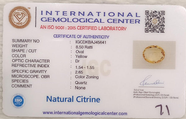 Why Choose a 8.50 Ratti Natural Citrine from Tushar Gems?