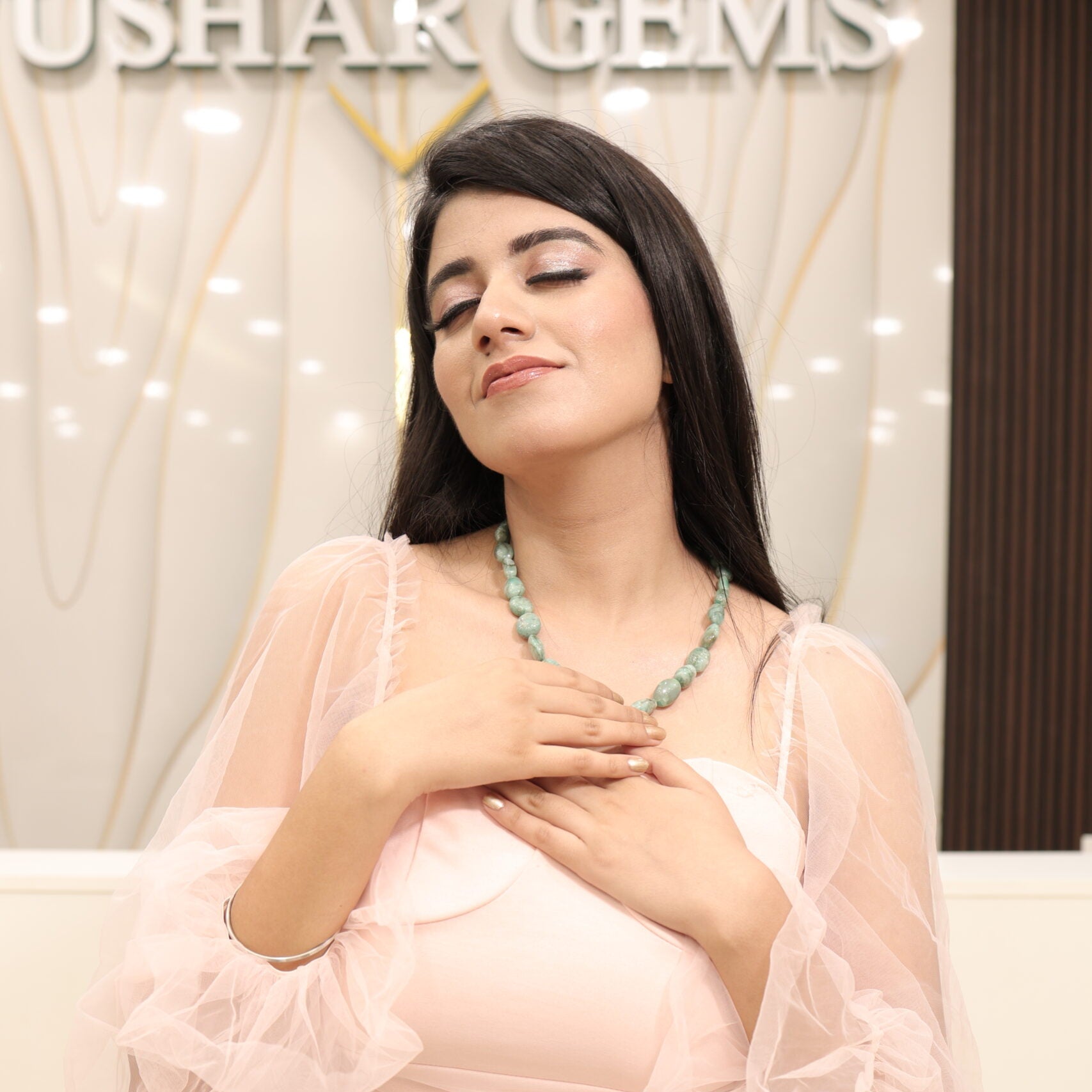 - Natural, Handpicked Emeralds: At Tushar Gems, we take pride in using only the highest quality natural emeralds. Each gemstone is handpicked for its color, size, and luster to ensure the necklace’s uniform beauty. Our craftsmanship guarantees that the emeralds are set securely in place, creating a necklace that is not only stunning but also durable.