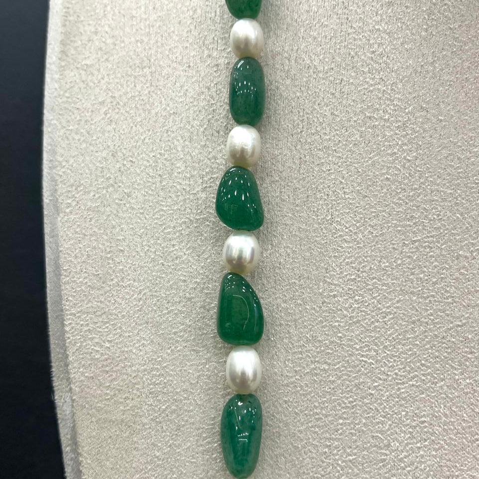 Semi Emerald Tumble Single ...The Natural Pearl with Semi-Emerald Necklace: A Perfect Blend of Grace and Glamour-G.STB02