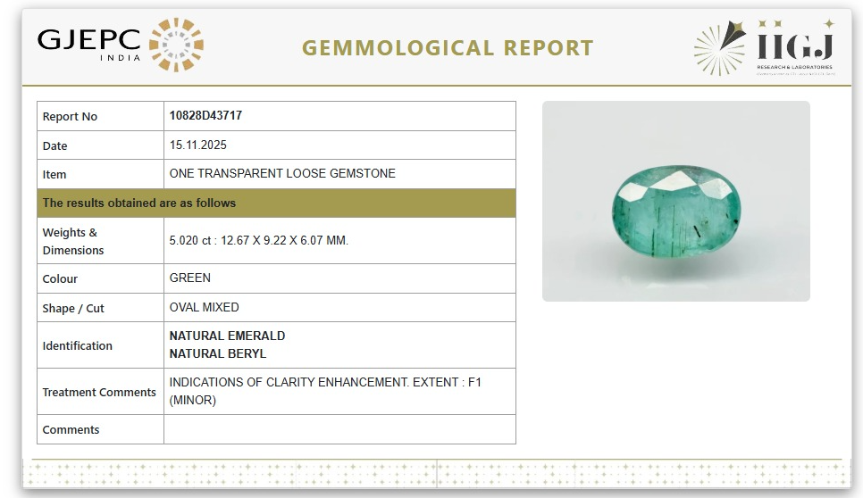 Discover the beauty of this Natural Emerald (Panna), certified by IIGJ Research & Laboratories...