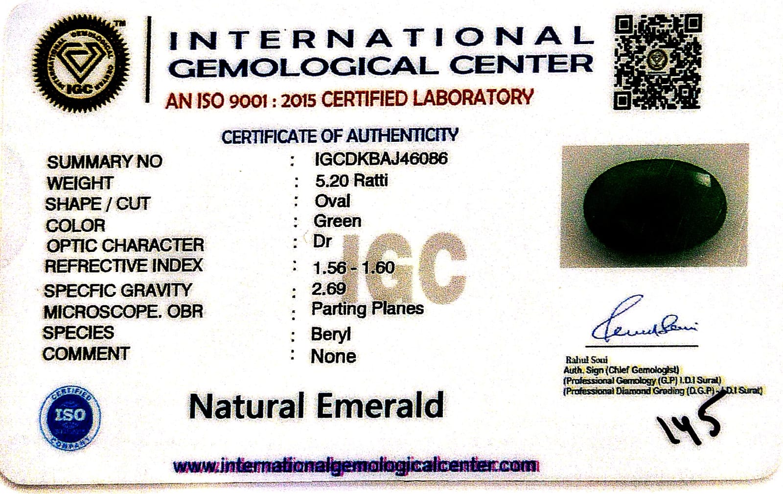 Natural Emerald | OvalCut |...Natural Emerald | Oval | Lab Certified No. IGCDKBAJ46086