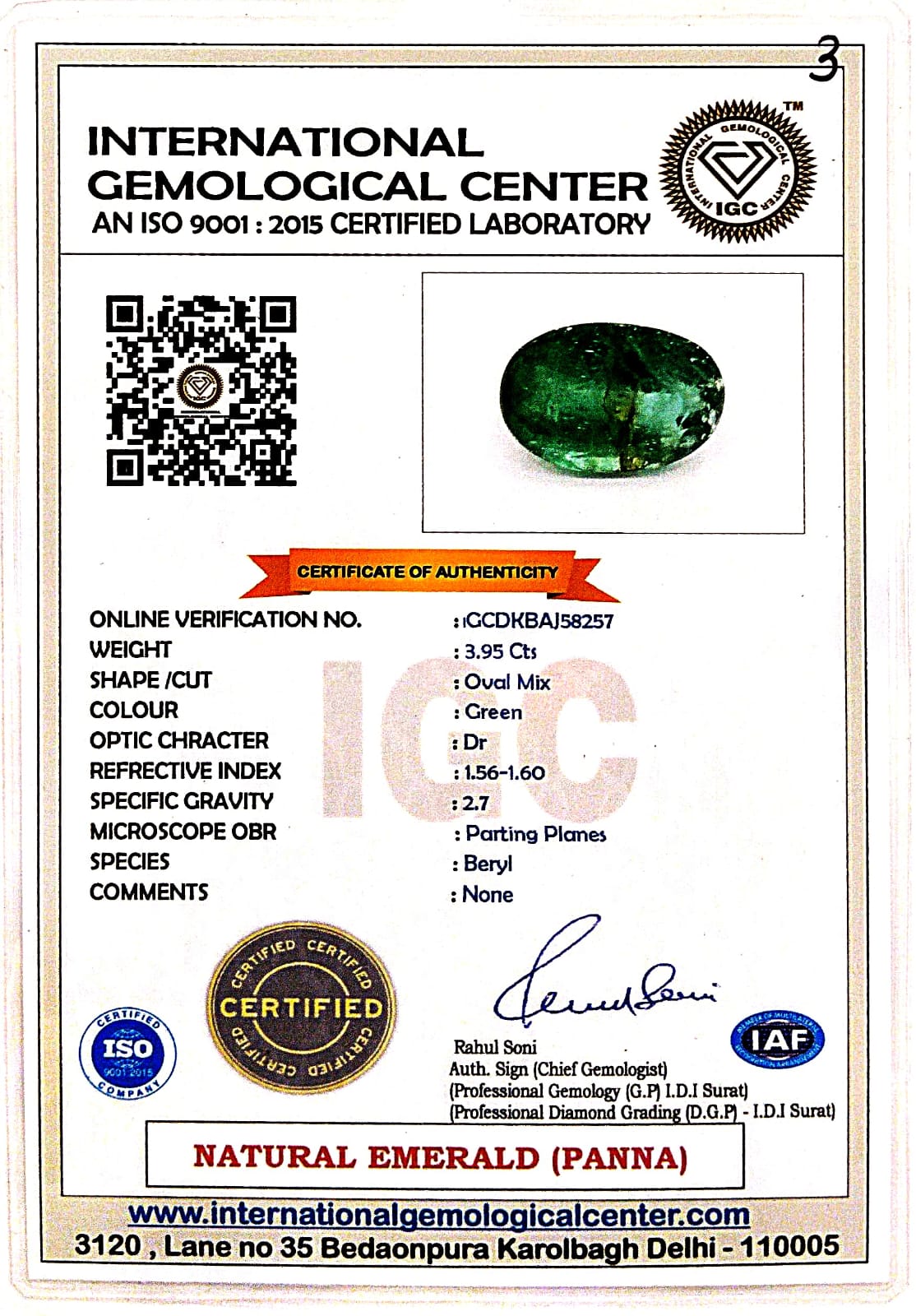 Certified by: International Gemological Center (IGC) – ISO 9001:2015 Certified