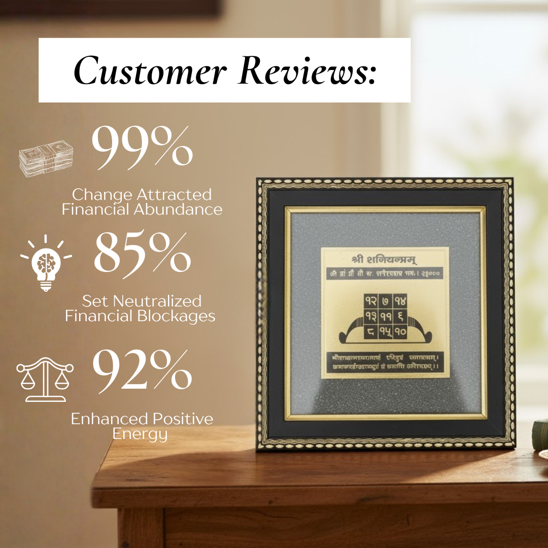• Auspicious Design: Features the powerful Shani Yantra (Saturn's mystical diagram), which includes a Magic Square with a constant sum of 15 and the Beej Mantra ("Om Praam Preem Proum Sah Shanaishcharaya Namah |") for invocation. The text below the yantra wishes for good fortune and success.