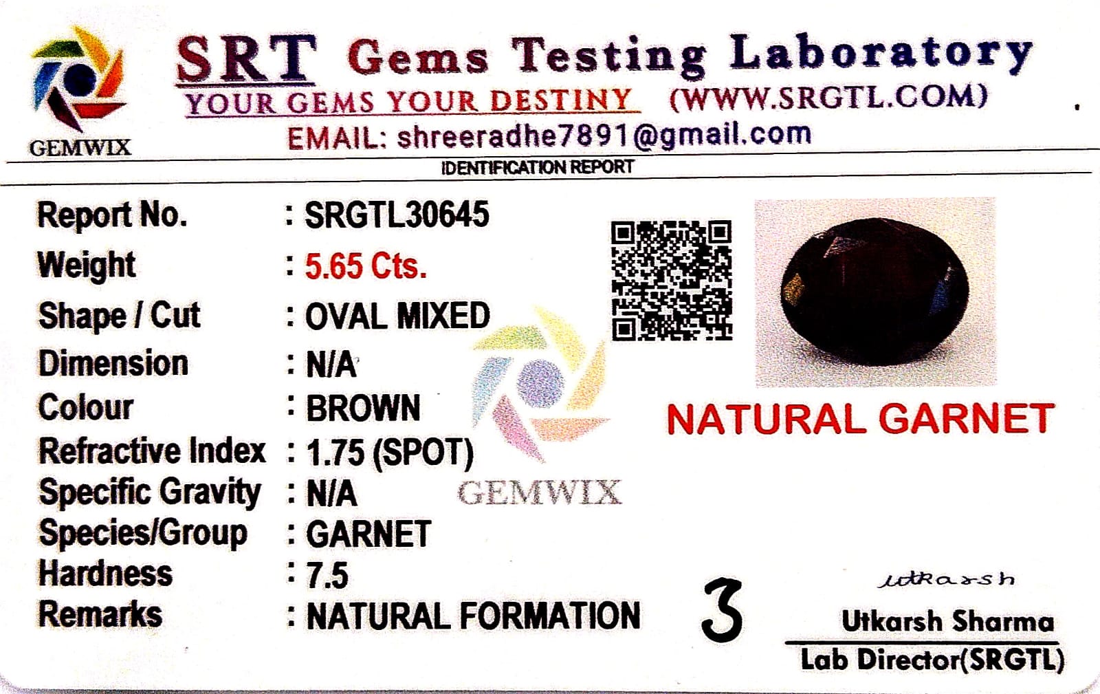 Natural Garnet Oval Mix SRT...Natural Garnet Oval Mix SRT Certified No : SRGTL30645