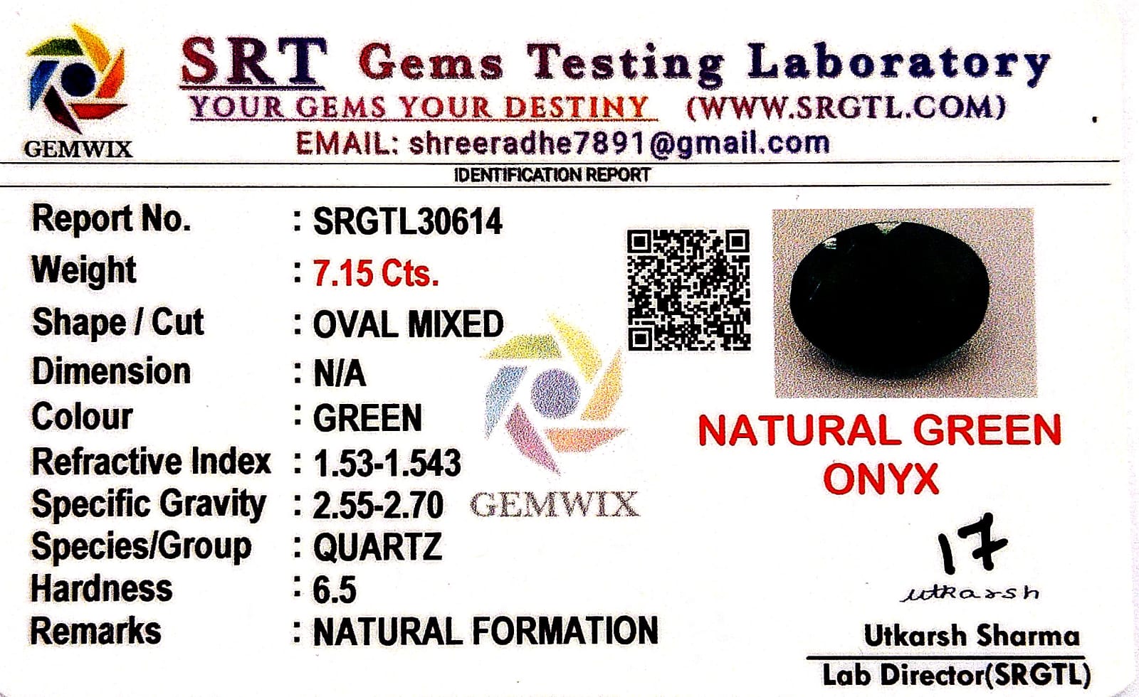 Natural Green Onex | Oval M...Natural Green Onex | Oval Mixed | SRT Certified No : SRGTL30614
