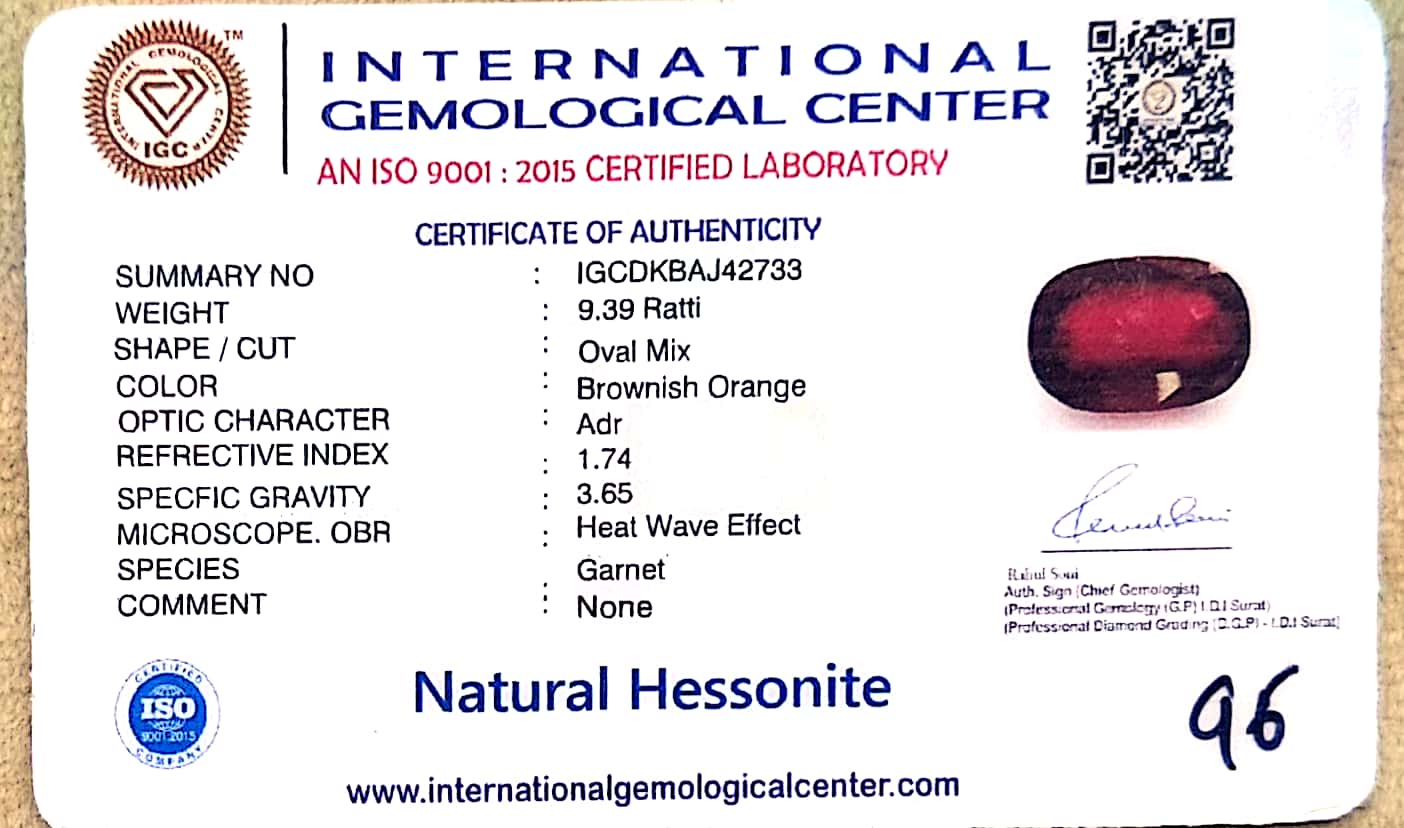 Natural Hessonite Garnet | ...Natural Hessonite Garnet | Oval Mix Cut | Brownish Orange Certificate No.: IGCDKBAJ42733