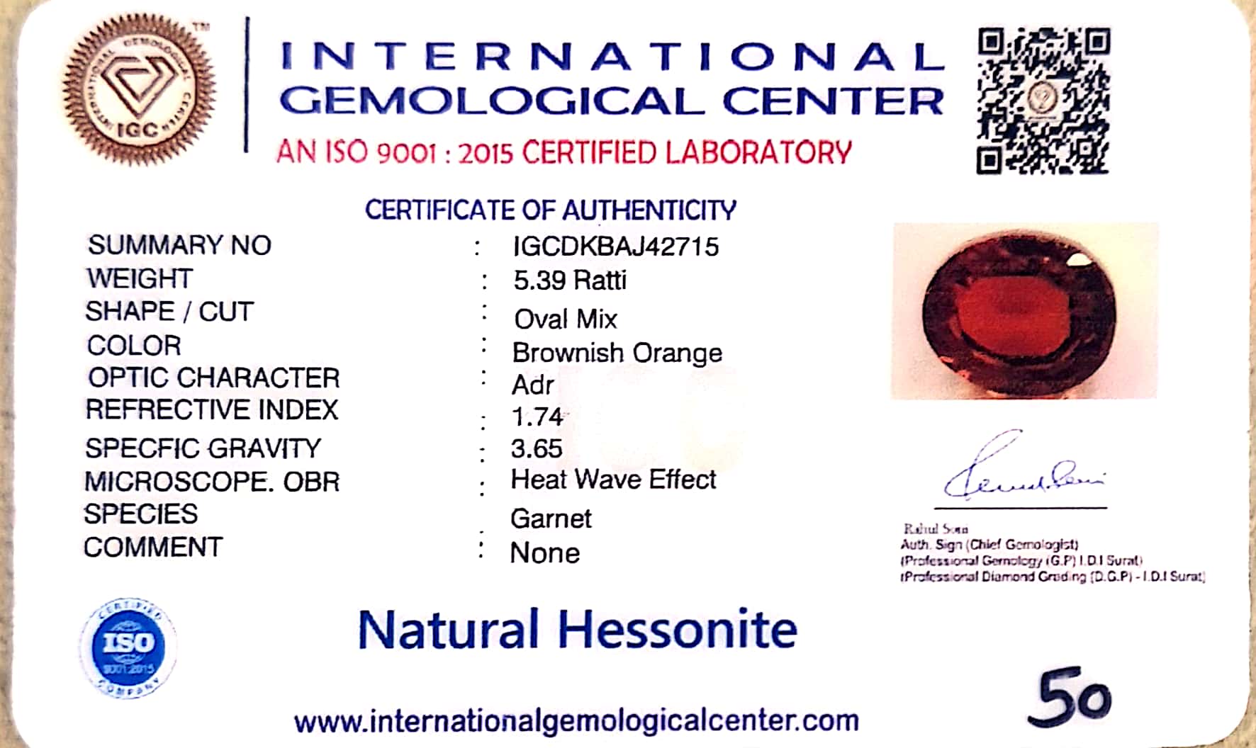 Natural Hessonite (Gomed) |...Natural Hessonite (Gomed) | Oval Mix Cut | IGC Certified Certificate No.: IGCDKBAJ42715