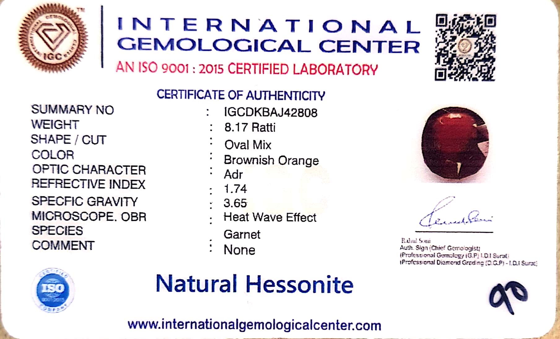 Natural Hessonite (Gomed) |...Natural Hessonite (Gomed) | Oval Mix Cut | IGC Certified Certificate No.: IGCDKBAJ42808