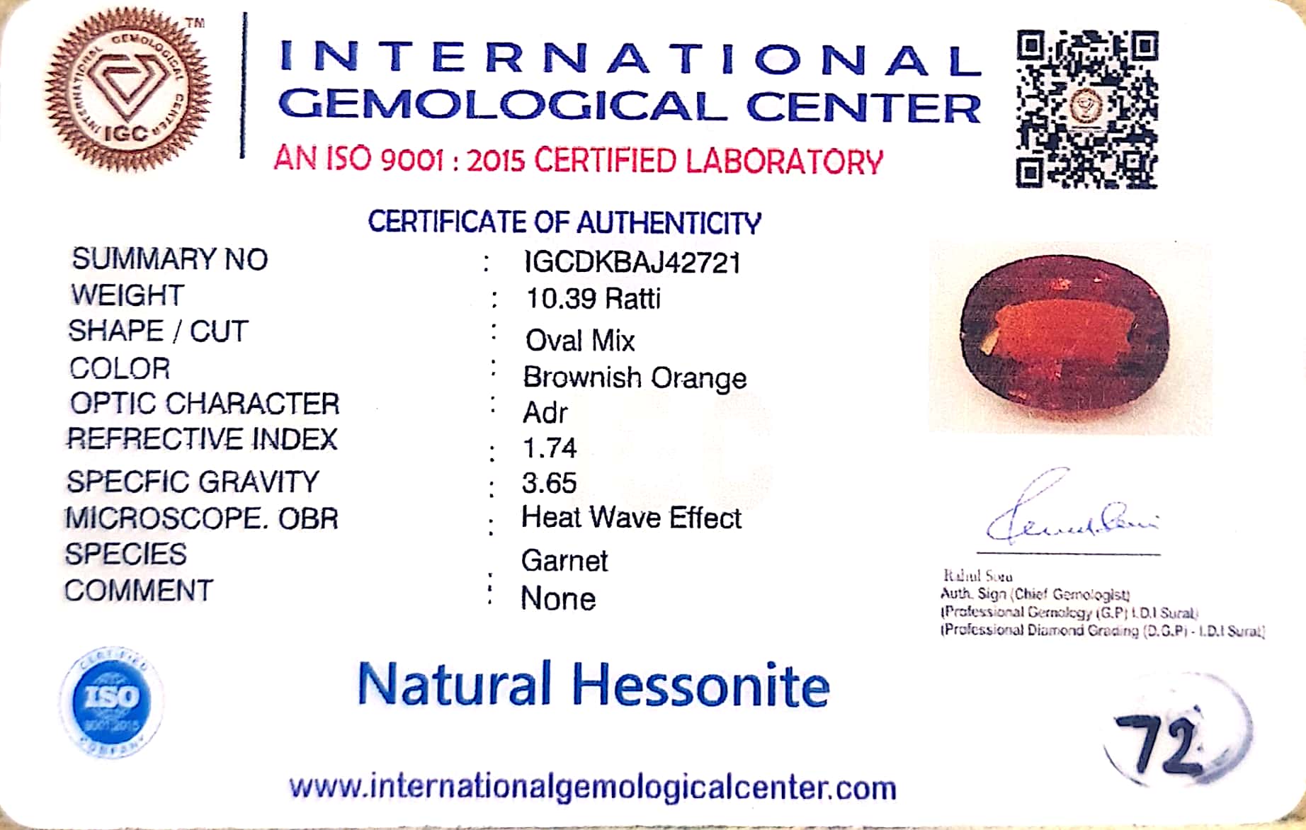Natural Hessonite (Gomed) |...Natural Hessonite (Gomed) | Oval Mix Cut | IGC Certified Certificate Number: IGCDKBAJ42721