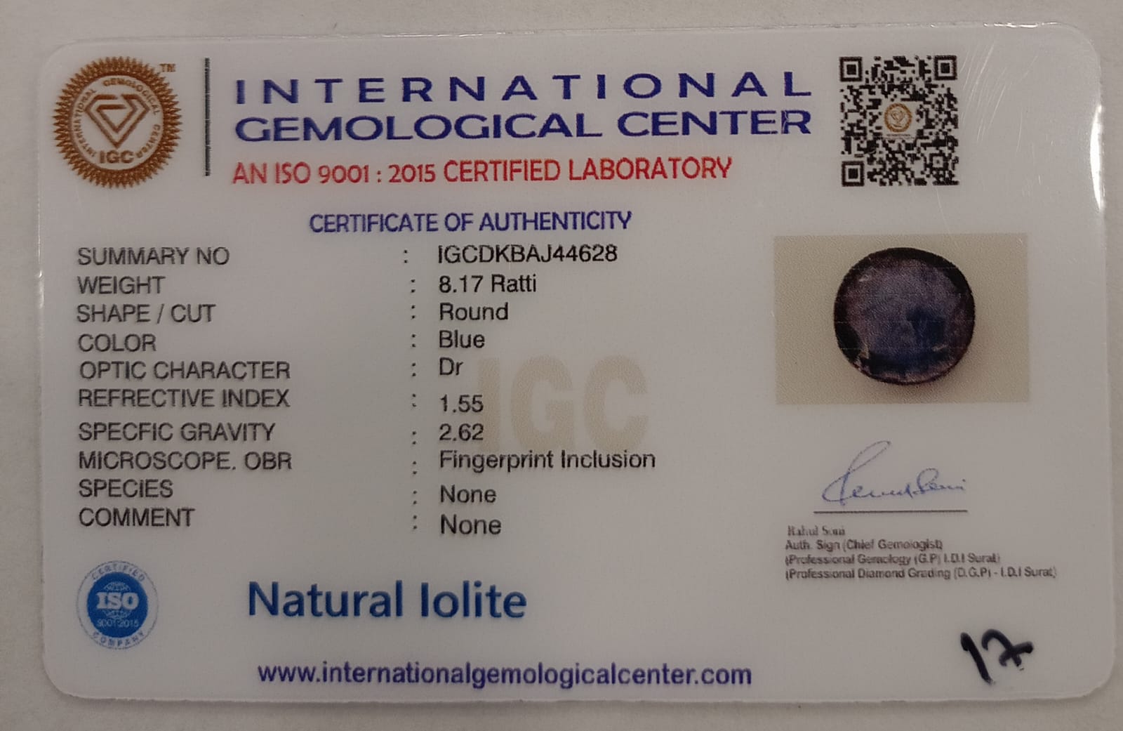 Certificate No.: IGCDKBAJ44628