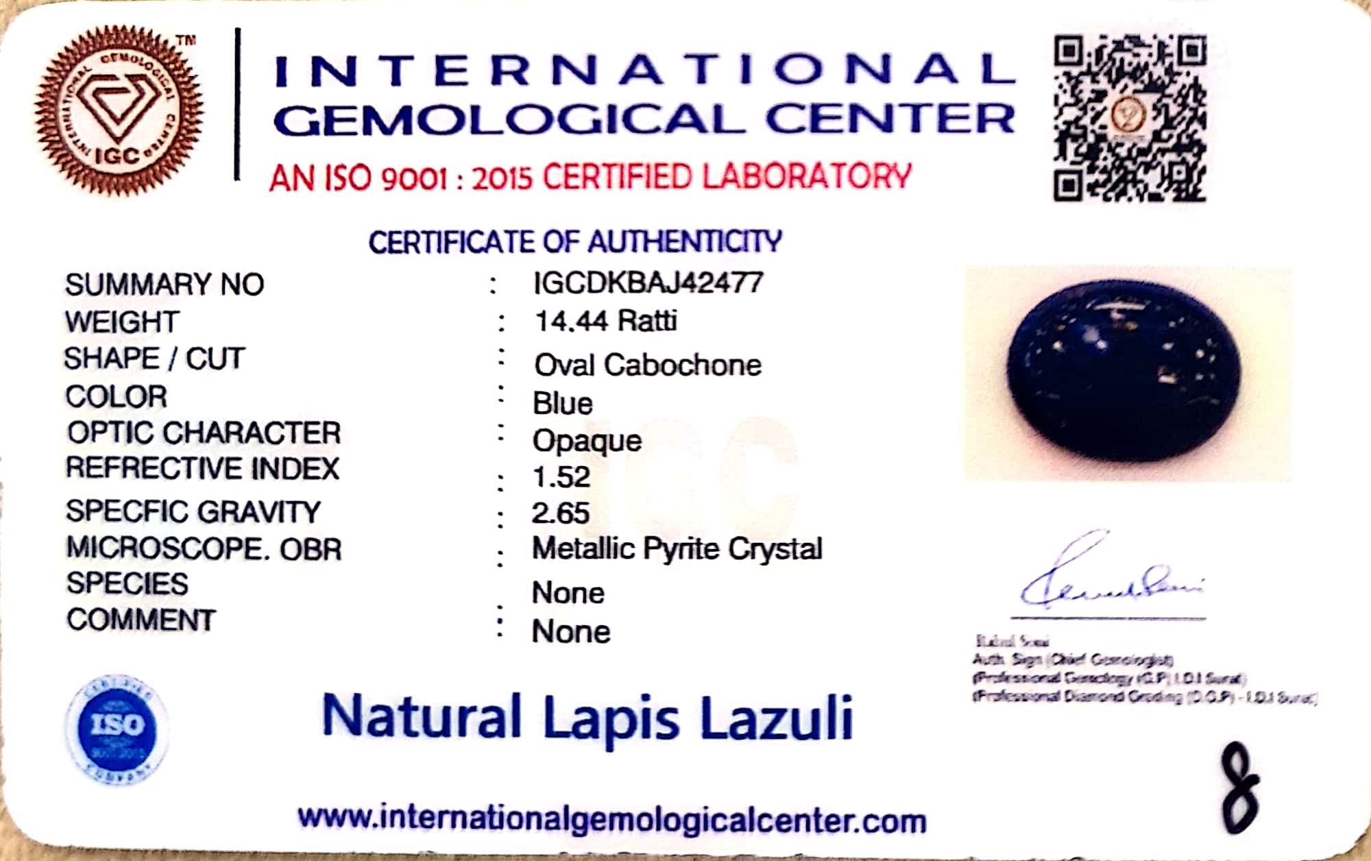 Natural Lapis Lazuli | Oval...Natural Lapis Lazuli | Oval Cabochon | IGC Certified Certificate No.: IGCDKBAJ42477