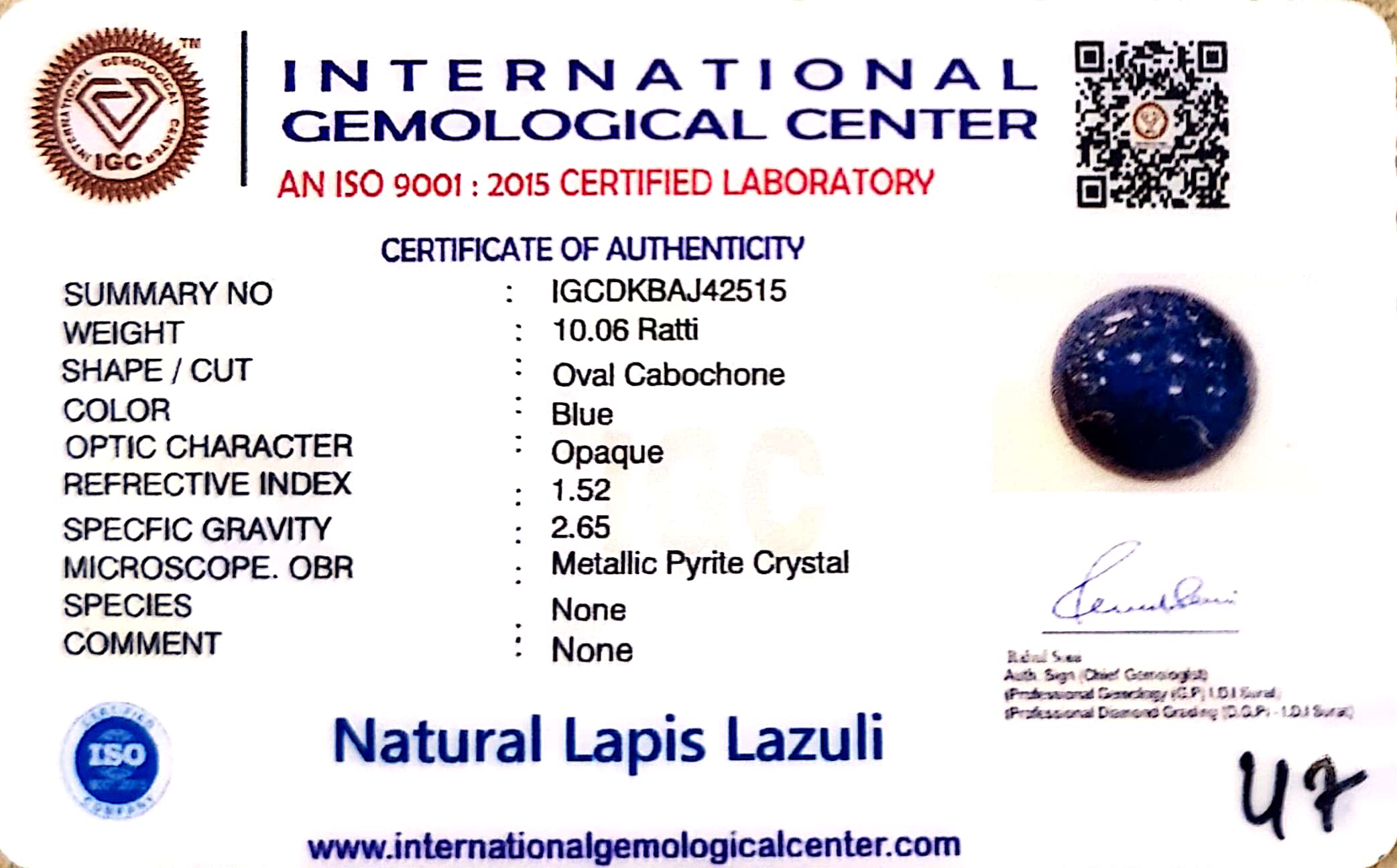 Natural Lapis Lazuli | Oval...Natural Lapis Lazuli | Oval Cabochon | IGC Certified Certificate No.: IGCDKBAJ42515