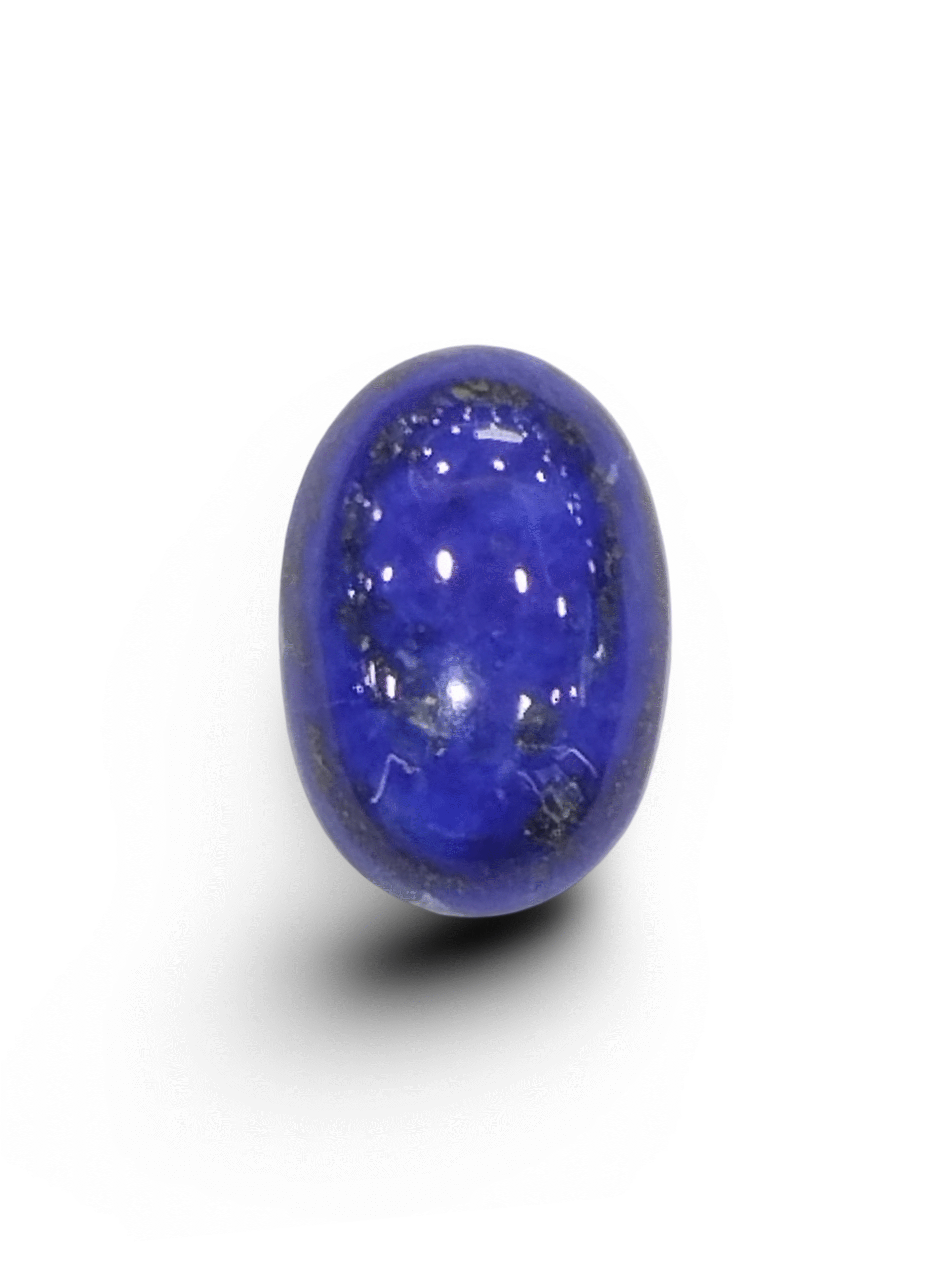 An exquisite 13.06 Ratti Natural Lapis Lazuli, masterfully shaped into an Oval cut, radiating a vibrant royal blue hue. This piece stands out with its enhanced pyrite crystal presence, giving it a shimmering, starry-night effect. A truly unique gemstone both in appearance and astrological power.