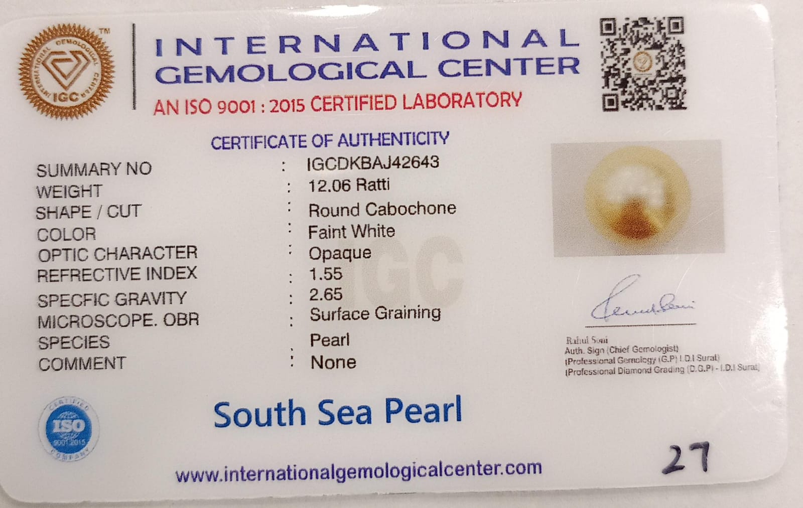 Natural South Sea Pearl – A...Natural South Sea Pearl – A Symbol of Elegance & Purity Summary No IGCDKBAJ42643