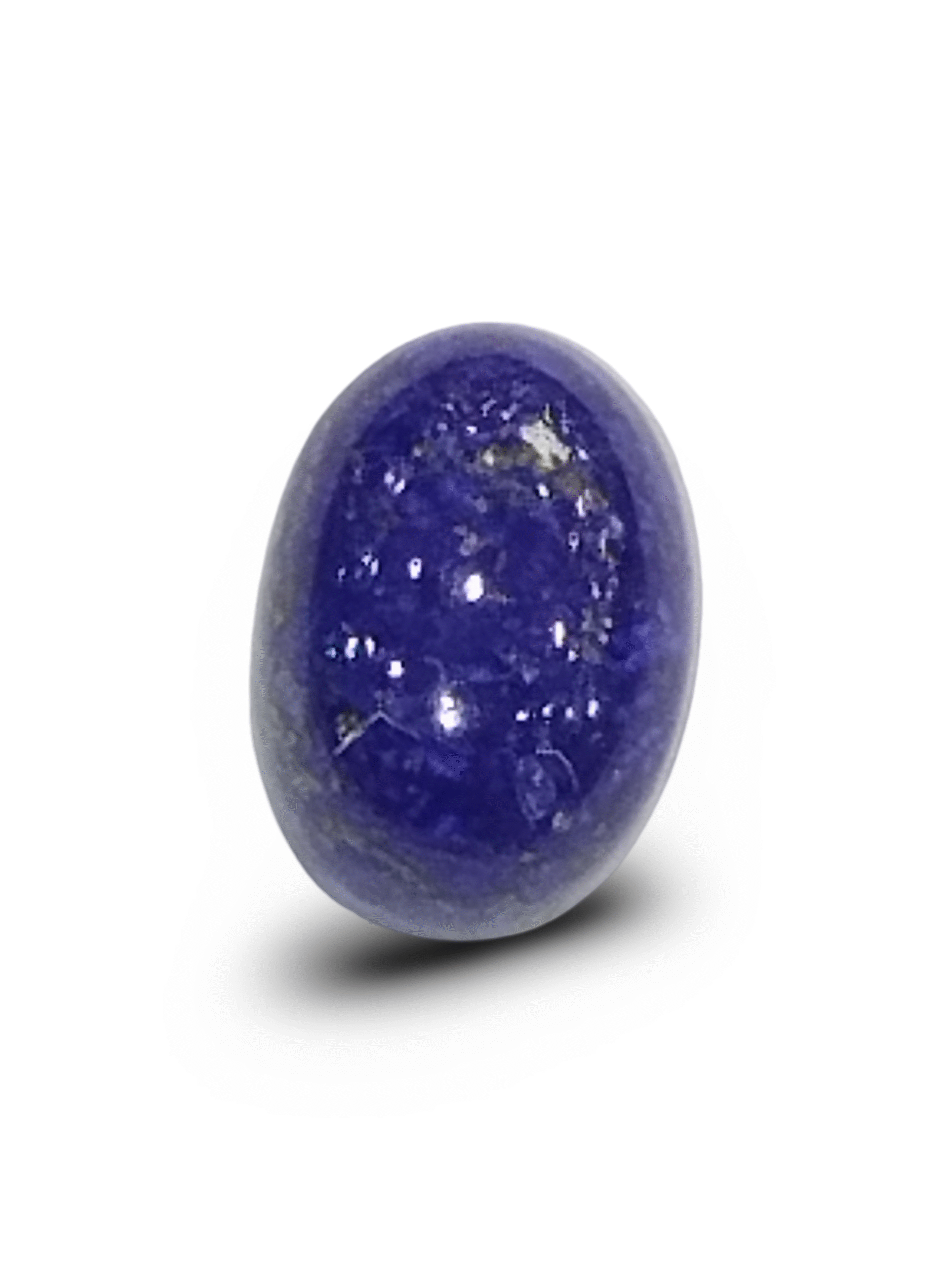 This premium 13.06 Ratti Natural Lapis Lazuli showcases a deep royal blue color, enhanced with natural metallic pyrite crystal specks. The gemstone is crafted in a classic Oval Cabochon shape, ensuring a smooth and elegant appearance.