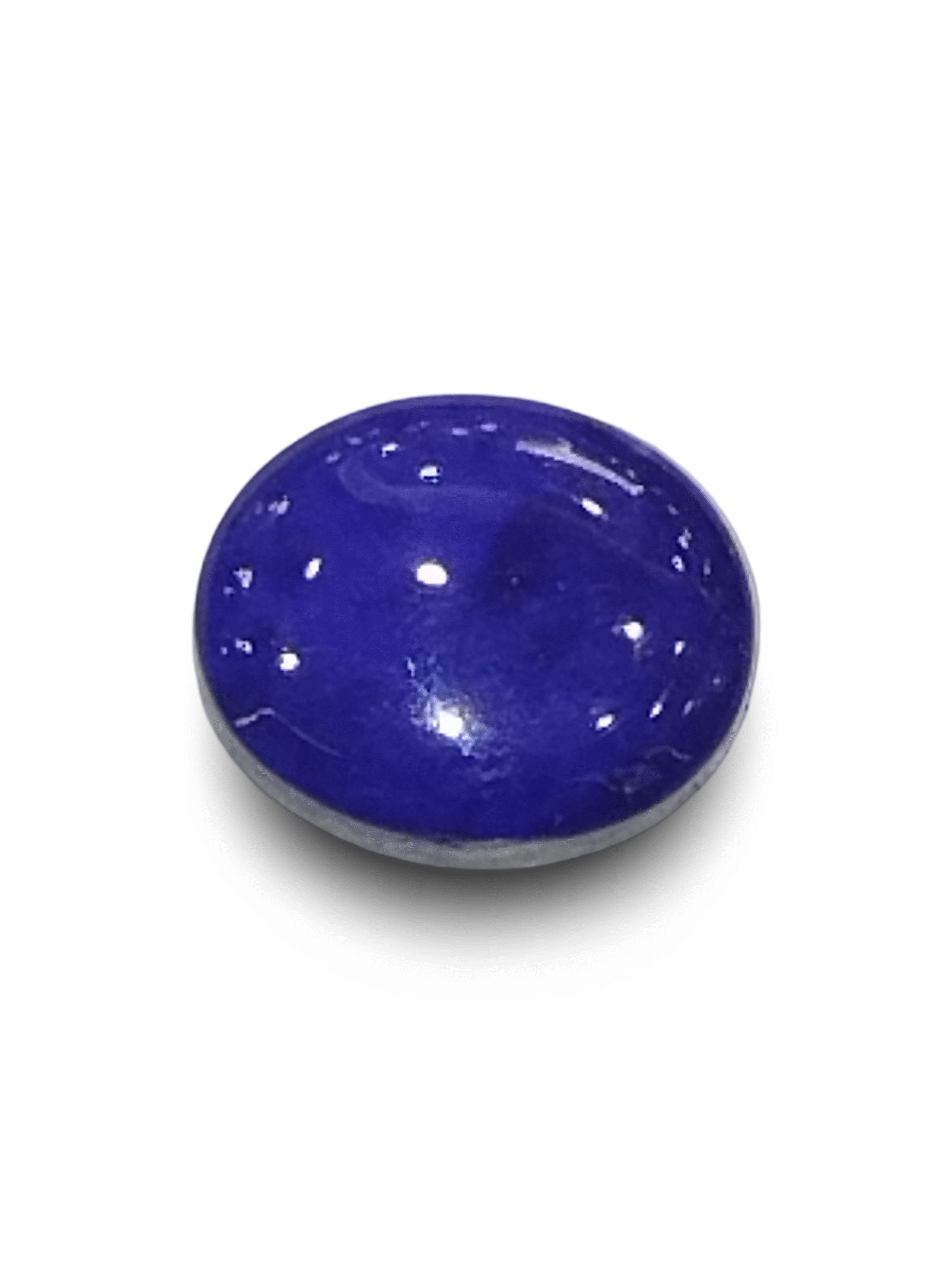 This exquisite 9.33 Ratti Natural Lapis Lazuli boasts a rich royal blue color and is masterfully cut in an oval cabochon shape. Its polished surface is adorned with naturally embedded metallic pyrite crystals, giving it a celestial appearance.