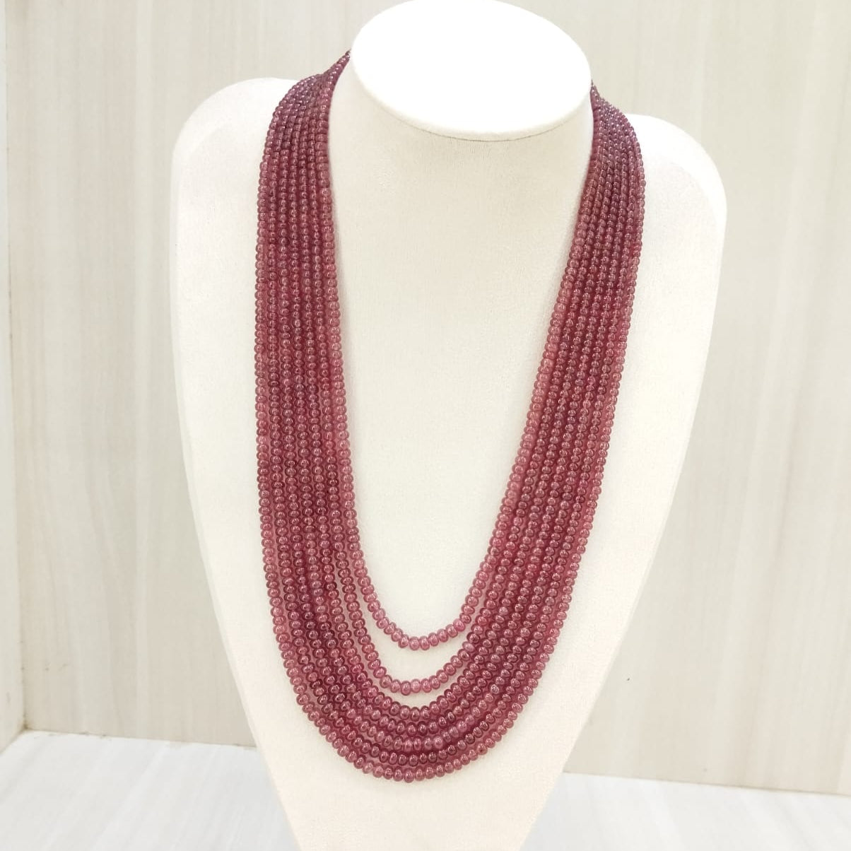 Natural Ruby Four line Bead...Natural Ruby Seven Line Beaded Necklace: A Symbol of Elegance and Passion