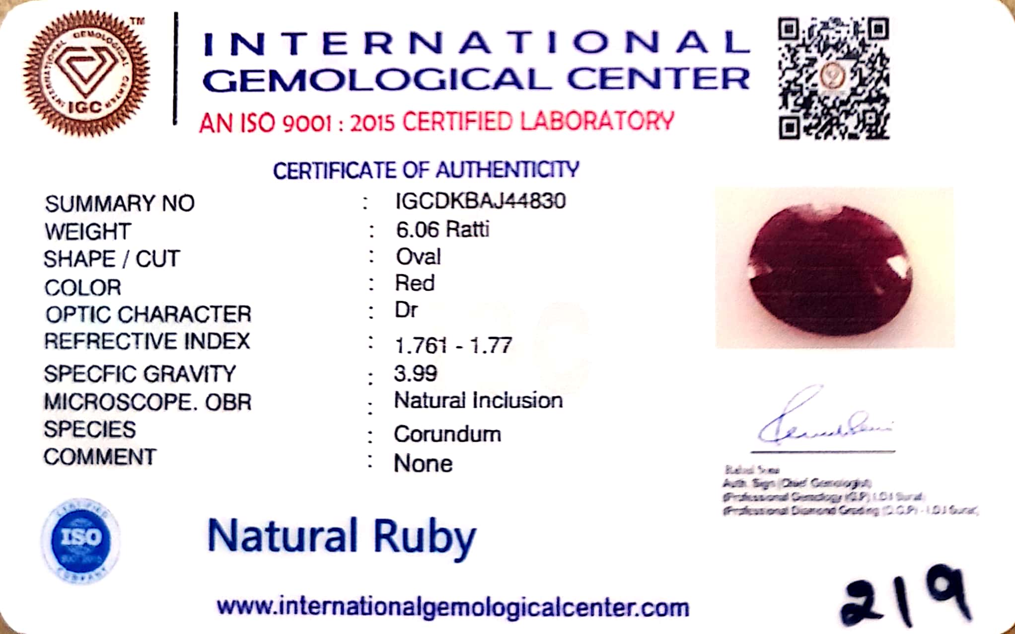 Natural Ruby | Oval Cut | IGC Certified No.: IGCDKBAJ44830