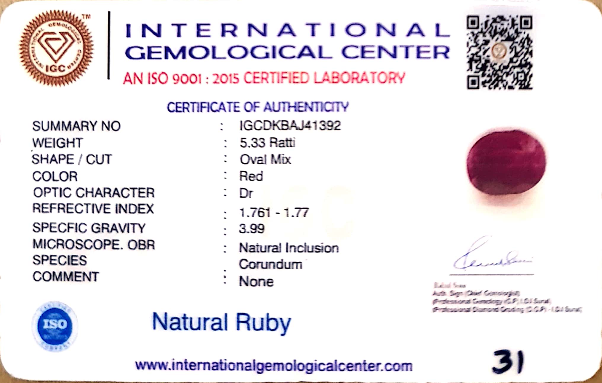Natural Ruby | Oval Mix Cut Red Gemstone | IGC Certified No.: IGCDKBAJ41392