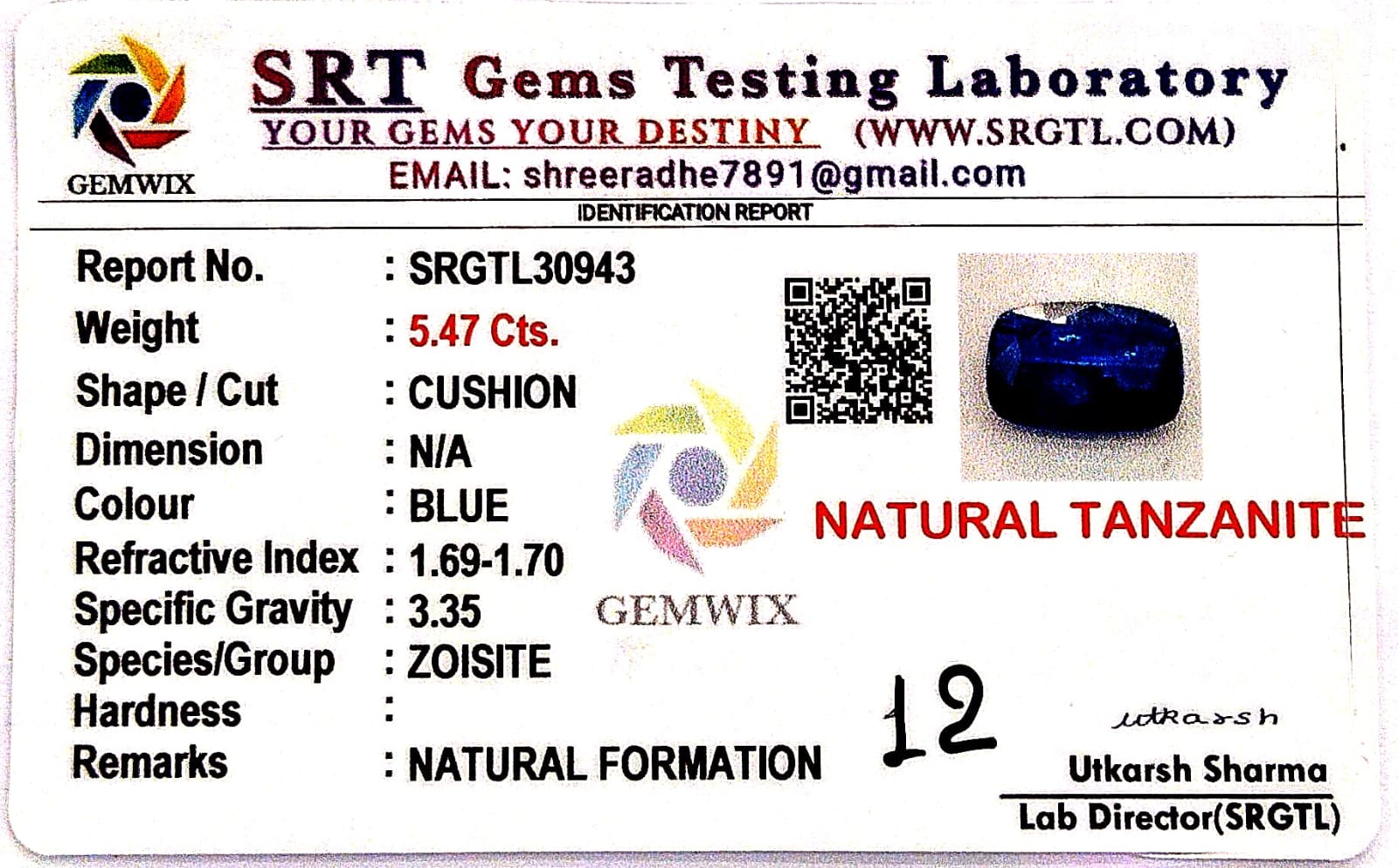 Natural Tanzanite | Cushion | SRT Certified No : SRGTL30943