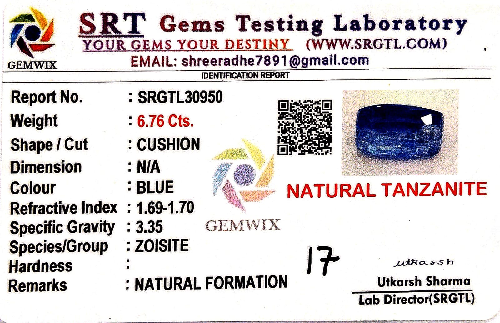 Natural Tanzanite | Cushion...Natural Tanzanite | Cushion | SRT Certified No : SRGTL30950