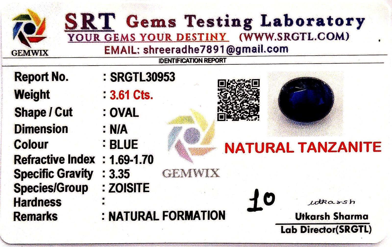 Natural Tanzanite | Cushion...Natural Tanzanite | Cushion | SRT Certified No : SRGTL30953