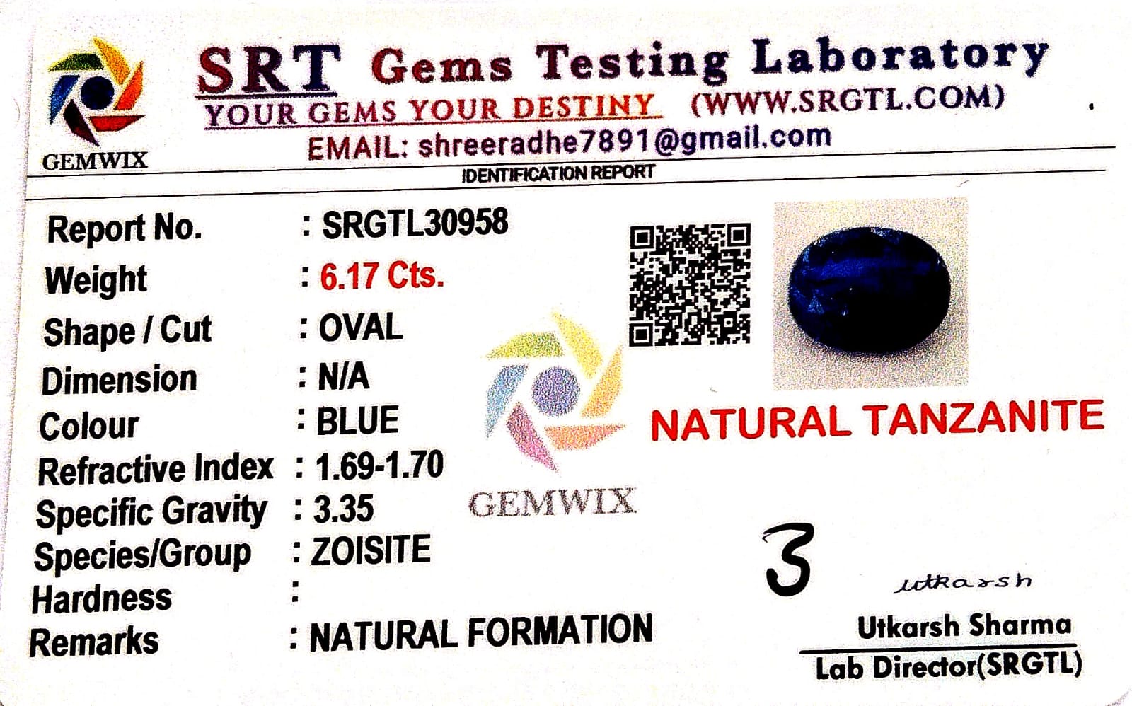 Natural Tanzanite | Oval | SRT Certified No : SRGTL30958