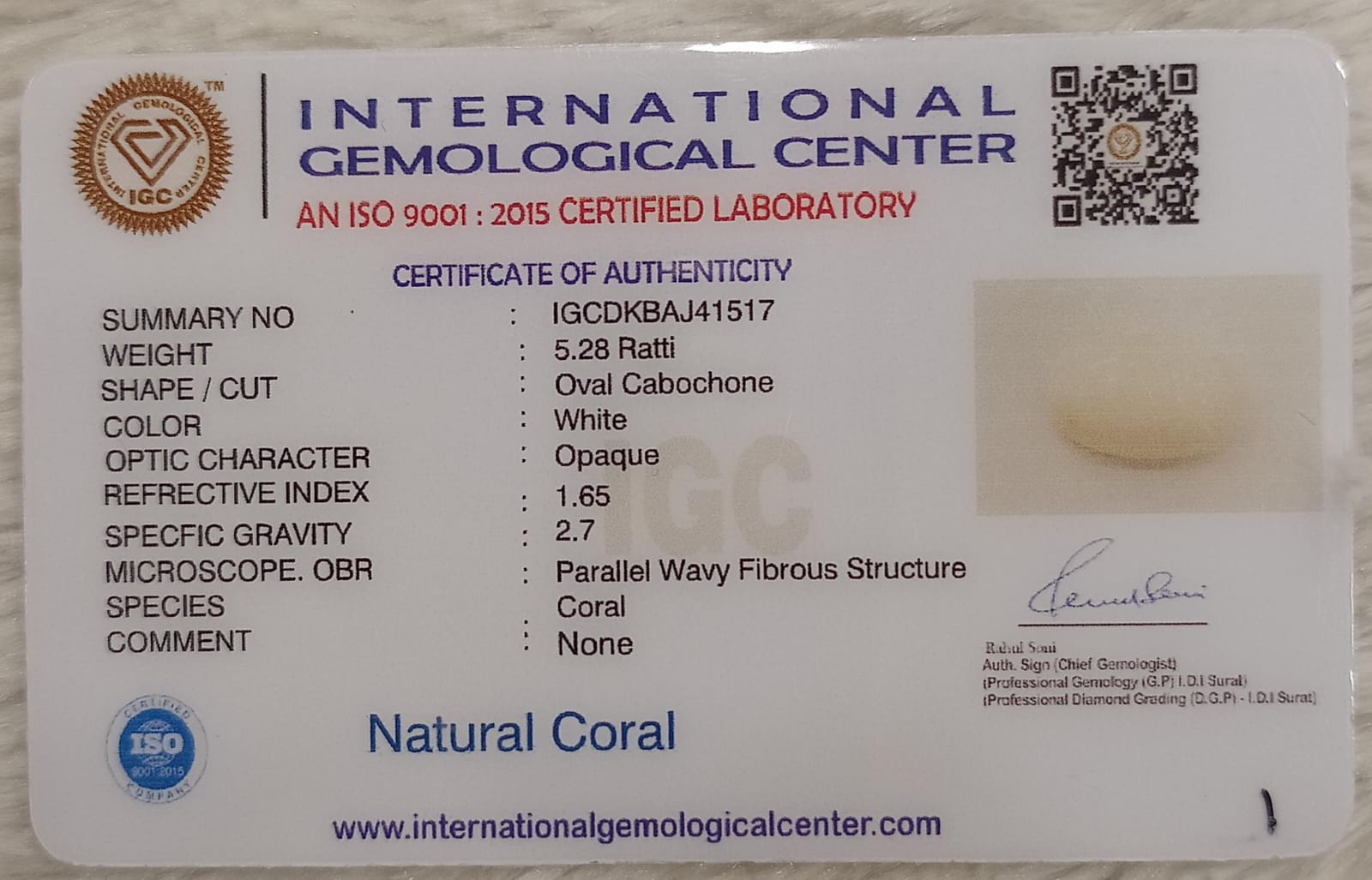 The 5.28 Ratti Natural White Coral offers an array of benefits, making it a highly versatile gemstone. From improving physical health to fostering emotional balance, the positive effects of this gemstone can bring lasting changes to the wearer’s life.