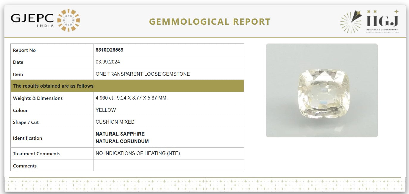 GJEPC IGJ Certified Genuine Yellow Sapphire