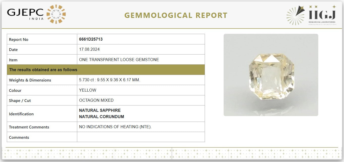 Natural Yellow Sapphire – 6.37 Ratti 5.730 Carat Ratti Certified Unheated Pukhraj | Octagon Mixed Cut | 6661D25713