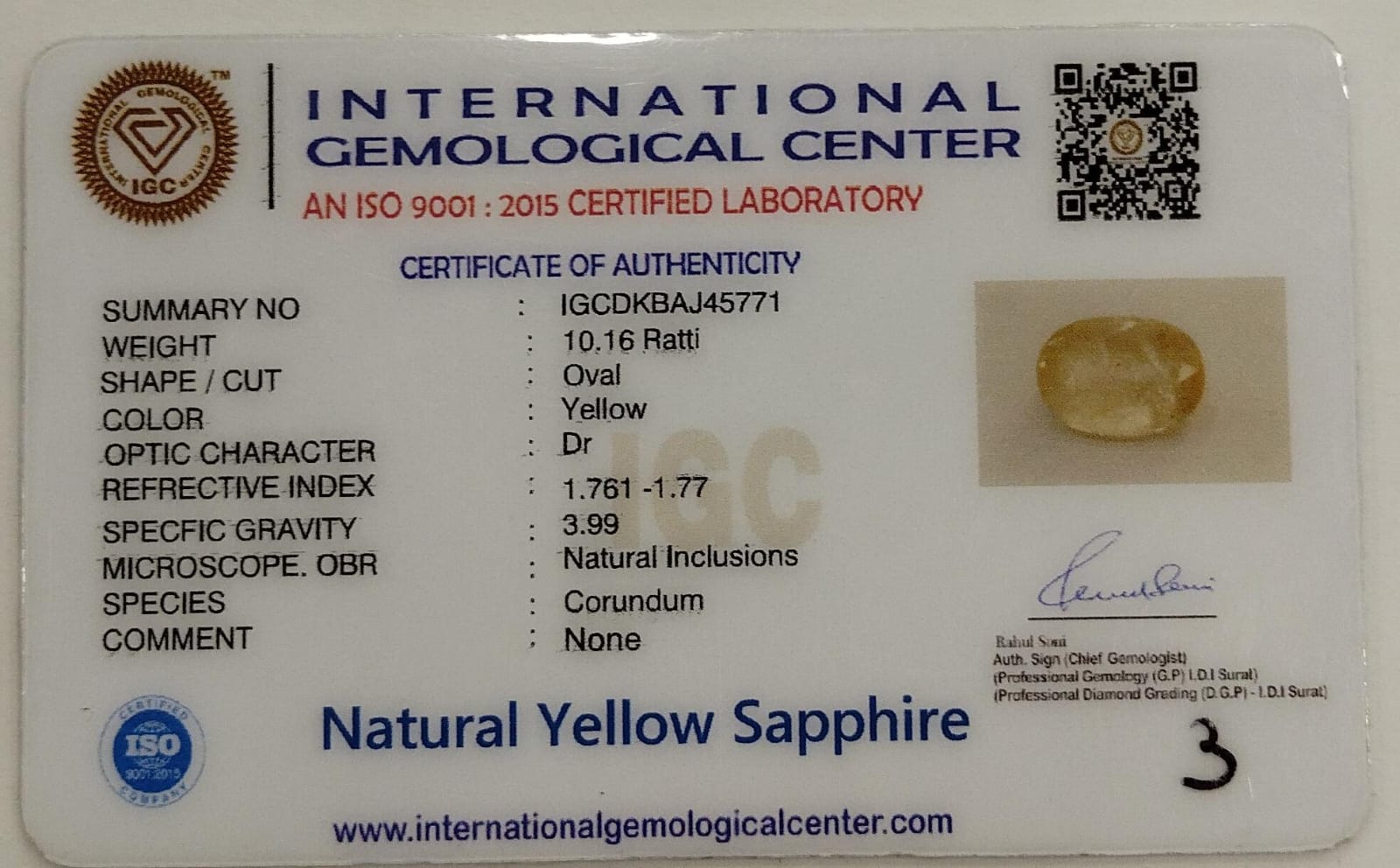 Natural Yellow Sapphire | O...Natural Yellow Sapphire | Oval Cut | IGC Certified No.: IGCDKBAJ45771