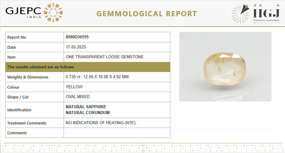 Tested and certified by a Government-authorized gemological lab (IIGJ – GJEPC India), the stone comes with no indications of heating (NTE), confirming it is completely natural and untreated, which adds to its spiritual and astrological significance.