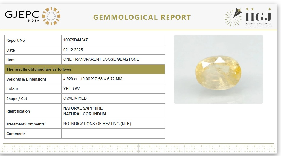 Natural Yellow Sapphire | Oval Mixed | Transparent | Govt. Lab Certified | Report No. 10979D44347
