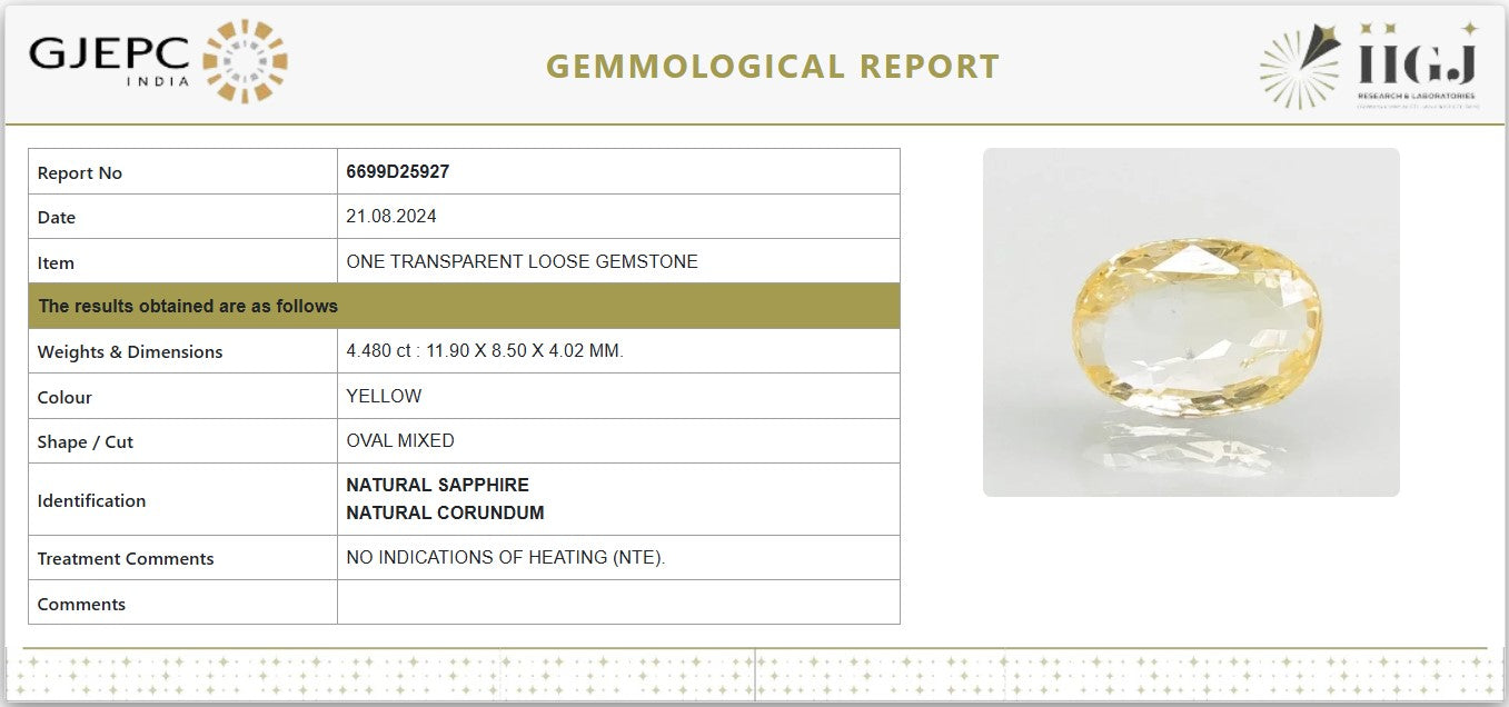 Natural Yellow Sapphire (Pu...Natural Yellow Sapphire (Pukhraj) – 4.480 Carat / 4.98 Ratti – Certified Untreated | 6699D25927
