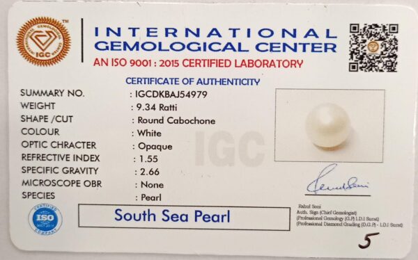 Natural South Sea Pearl – A Symbol of Elegance & Purity Summary No IGCDKBAJ54979