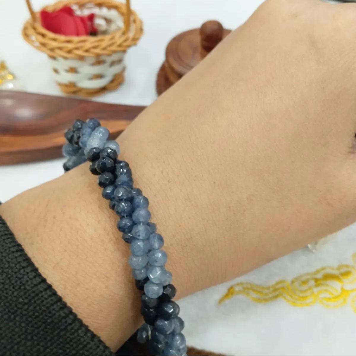 Avoid contact with water, perfumes, or harsh chemicals. Store your jewelry separately in a soft pouch. Clean gently with a dry cloth to preserve its shine and spiritual energy.