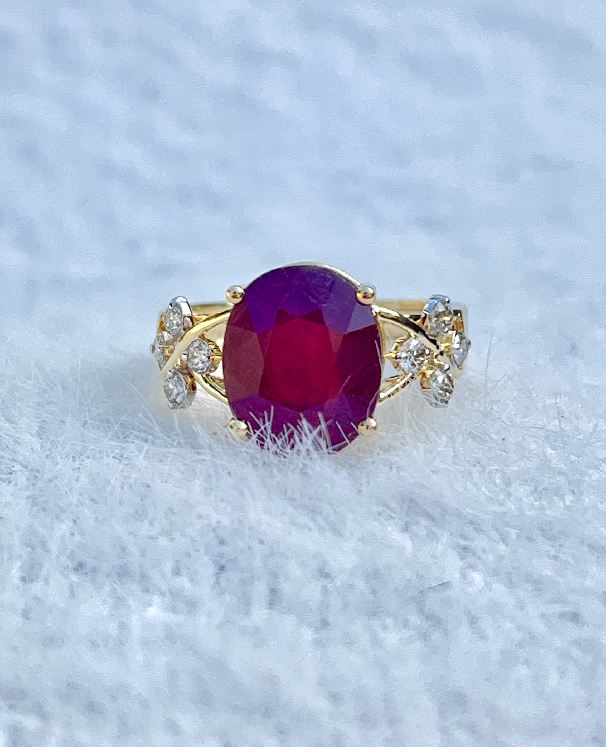 Whether for a special celebration or as an addition to your fine jewelry collection, this Natural Oval Shape Ruby and Diamond Ring offers a perfect blend of color, sparkle, and classic beauty.